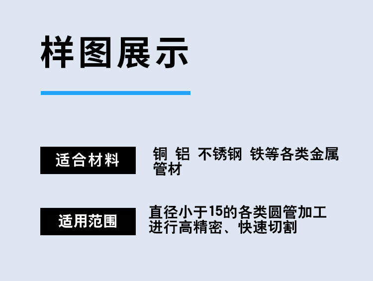 適用于加工直徑小于15的各類圓管加工,以及部分對精度要求較高的產品。加工材質廣,可加工不銹鋼、鐵、銅鋁合金等多鐘材料。 本機針對醫療行業需求優化,可加工醫療器械使用的各類管件。