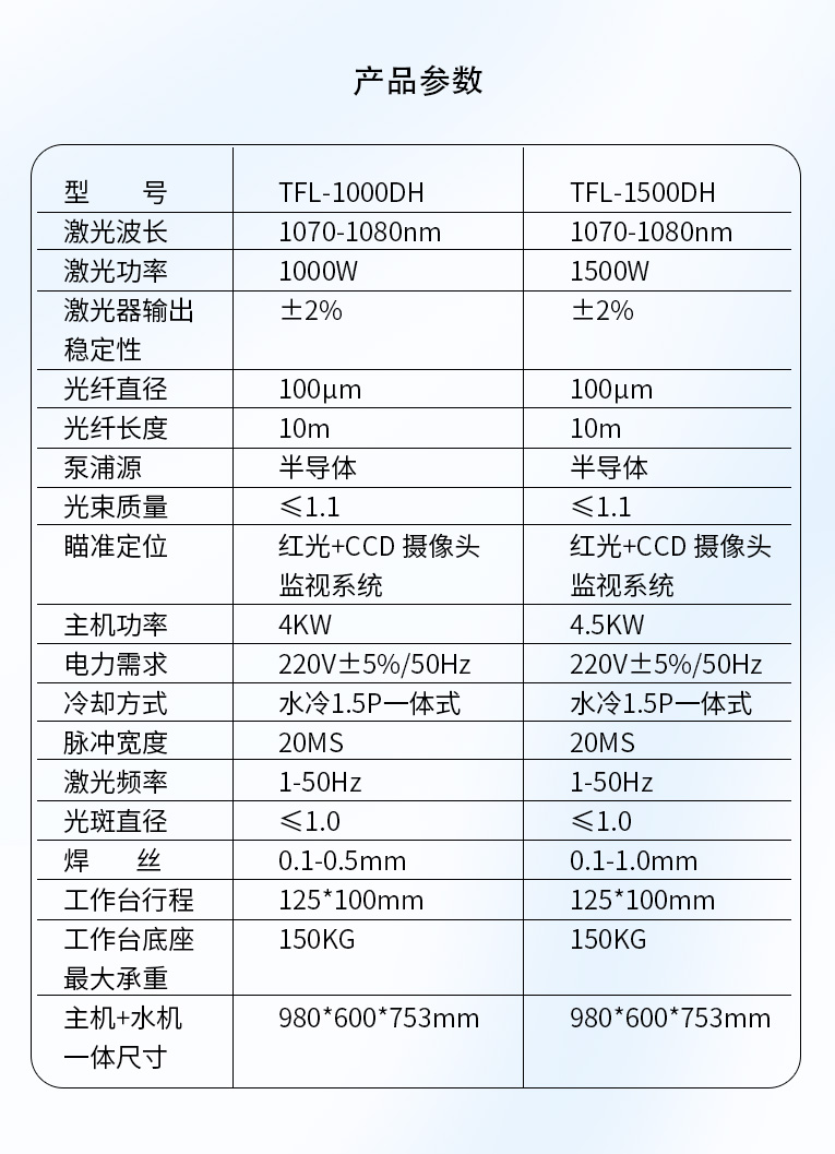 | 激光功率 | 1000W | 1500W |