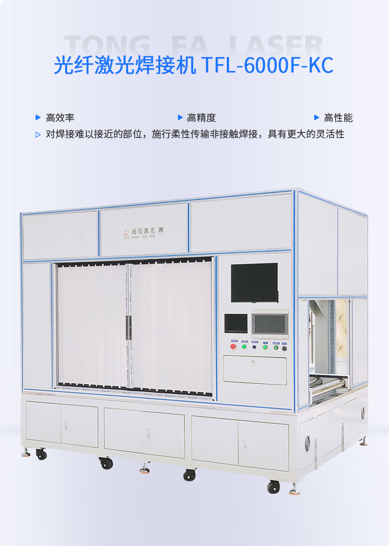 安全性:全封閉式自動(dòng)化產(chǎn)線設(shè)備,外部安全光柵,自動(dòng)輸送托盤 柔性化:滾筒式,倍速鏈?zhǔn)綑C(jī)構(gòu),適合多種規(guī)格電池焊接清洗, 精度高:各工序采用精密加工裝配,嚴(yán)格控制工序變形 焊縫特點(diǎn):備保證氣箱焊縫飽滿,密封性好,熔深不小于薄壁側(cè)厚度,焊接穩(wěn)定等 設(shè)備系統(tǒng):雙視覺(jué)系統(tǒng)(提高效率)、測(cè)高系統(tǒng)、輸送滾筒機(jī)構(gòu)、焊接控制系統(tǒng) 加工頭:振鏡式焊接頭、適合圓直線弧形等軌跡清洗焊接